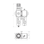 Grupo de filtraje CAMOZZI compuesto por filtro, regulador y lubricador.